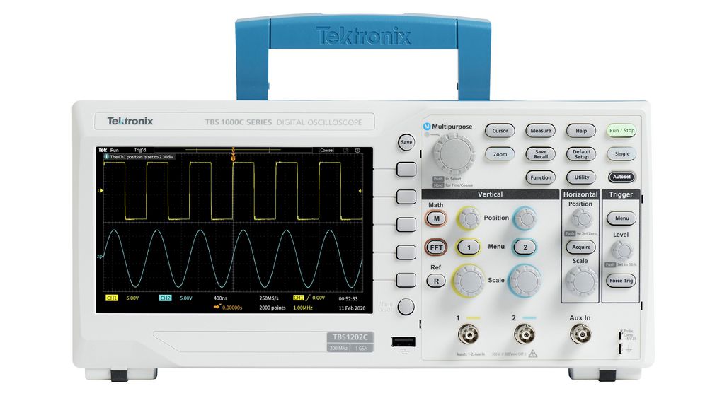 Digital Storage Oscilloscope: Analog Bandwidth 70MHz, Sample Rate 1GS/s, Record Length 20k points, 2 Analog Channels.